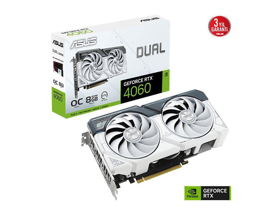 Asus RTX 4060 Dual OC DUAL-RTX4060-O8G-WHITE, son derece güçlü ve verimli bir ekran kartıdır. 128 bit GDDR6 belleği ve 8 GB kapasitesi, yüksek çözünürlüklü oyunlar ve grafik yoğun işler için mükemmel performans sunar. Ek olarak, fabrika çıkışlı overclock özelliğiyle, kartın performansını daha da artırabilirsiniz.