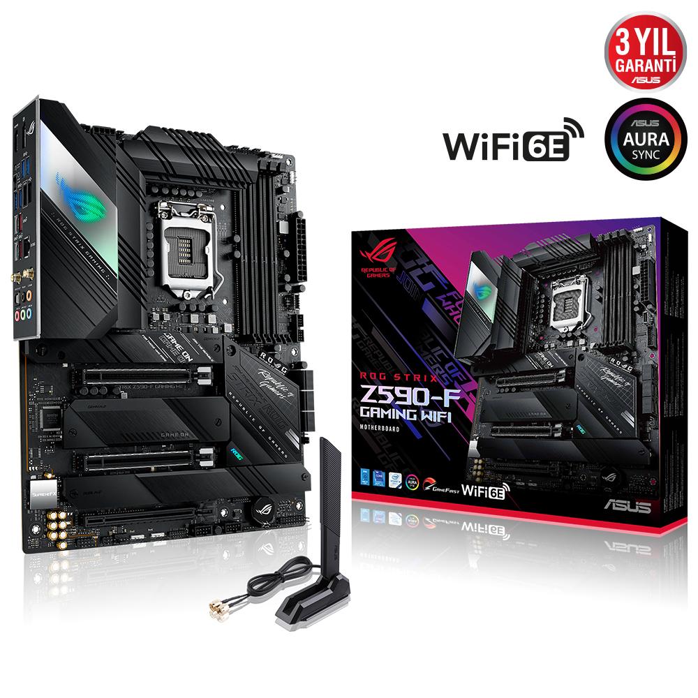 Amiral gemisi konumundaki ROG Strix Z590-F Gaming WiFi anakart, 11. Nesil Intel® Core™ Rocket Lake işlemcilerin taleplerini sağlamlaştırılan güç dağıtımı özellikleriyle ve uygun soğutma tasarımıyla karşılamak üzere tasarlandı. En yeni Intel® Wi-Fi 6E ve PCI Express® Gen 4 M.2 özelliklerini barındıran bu anakart süper hızlı veri depolama imkanı ve yüksek aktarım hızları sunuyor. İki Yönlü Yapay Zeka Destekli Gürültü Engelleme özelliğini de içeren anakart, oyunlarda arka plan gürültüsünü azaltarak net iletişim sağlıyor. Fırçalanmış metal kaplama, giriş çıkış korumasının üzerindeki parlak ROG logosu ve Aura Sync aydınlatma, Strix Z590-F Gaming WiFi modeline gelecekten gelen bir görünüm katıyor.