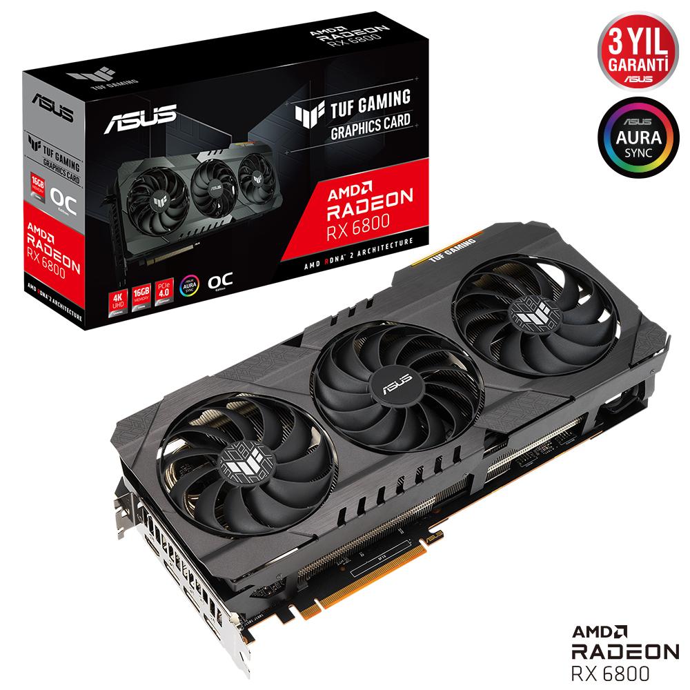 Yüksek performanstan asla vazgeçmeyen bir canavar olan TUF GAMING Radeon™ RX 6800 XT, sağlam bir metal dış iskelete, son derece verimli bir soğutma sistemine ve üstün dayanıklılık sunan bileşenlere sahip. Tamamen metalden üretilen ön korumanın altında eksen teknolojili, çift rulmanlı ve ekstra kanatlara sahip güçlü fanlar bulunuyor. İç kısımda ise büyük bir soğutma bloğu sıcaklığı sıkı kontrol altında tutuyor. Maksimum dayanıklılık ve performans için seçilen TUF bileşenleri ise kartın rakiplerinin önüne yer almasını sağlıyor. Güçlü ve dayanıklı bir makine istiyorsanız bu kart sizin için hazır.