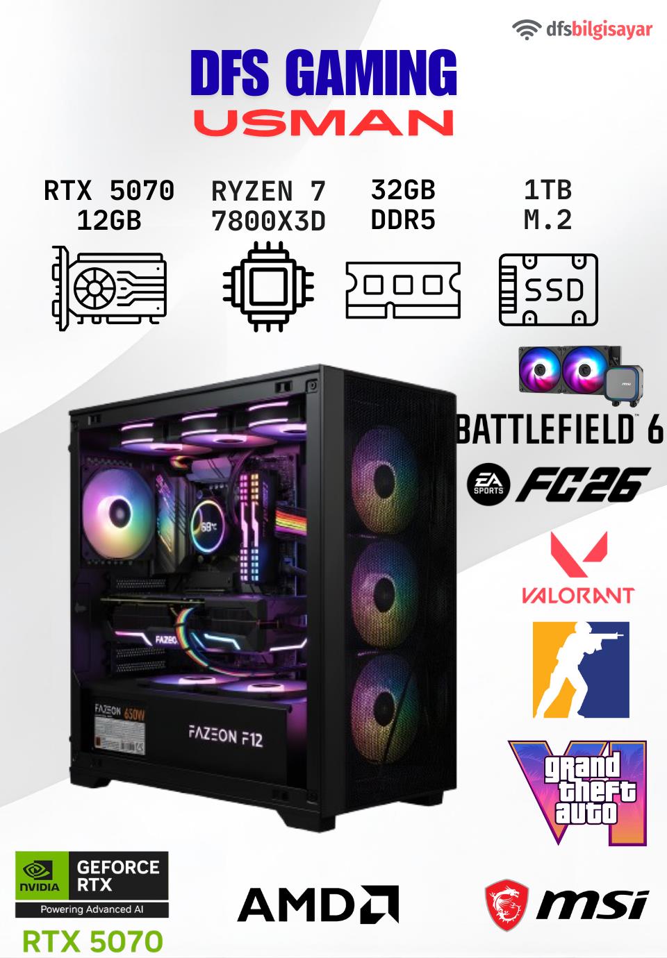 Orta segmenti geride bırakın, üst lige hoş geldiniz! GDDR7 bellek teknolojisi ve artırılmış bant genişliği ile RTX 5070, en ağır grafik yüklerinin altından kolayca kalkar. Yapay zeka destekli DLSS teknolojisinin son sürümü ve güçlü Işın İzleme (Ray Tracing) çekirdekleri sayesinde, oyunları sadece oynamaz, "Ultra" ayarlarda sinematik bir kalitede yaşarsınız. 7800X3D ile birleştiğinde hem 1080p hem de 1440p çözünürlükte rakipsizdir.