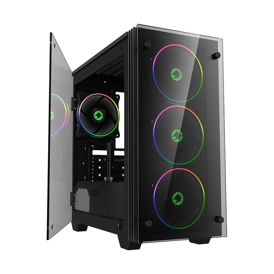 M-ATX Tipi GameMax Mini STRATOS Oyun Kasası, 2020 için yepyeni, temperli cam yan panelli Oyun Kasasını tanıttı, Kolay ve açık kapı tasarımı ile ön ve arkada önceden kurulmuş 4 Çift halka rainbow RGB fanı, çarpıcı aydınlatma efektleri ve önceden kurulmuş PWM & Rainbow HUB kontrolörü ile sisteminize kolayca bağlanabilirsiniz. MINI STRATOS, 240 mm'ye kadar su soğutmayı ve 340 mm'ye kadar grafik kartını ve benzersiz VGA tutucuyu takmayı destekler. GameMax Mini STRATOS ile uyumlu olarak bu durum, stil, performans ve en üst düzey deneyimi sunar.